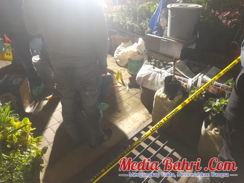Senin pagi (25/08/2025), pantauan kru Mediabahri.com di lokasi, kios korban telah dililit garis polisi. Bercak darah diduga milik korban masih terlihat jelas di sekitar tempat kejadian, memperkuat dugaan korban diserang secara brutal.