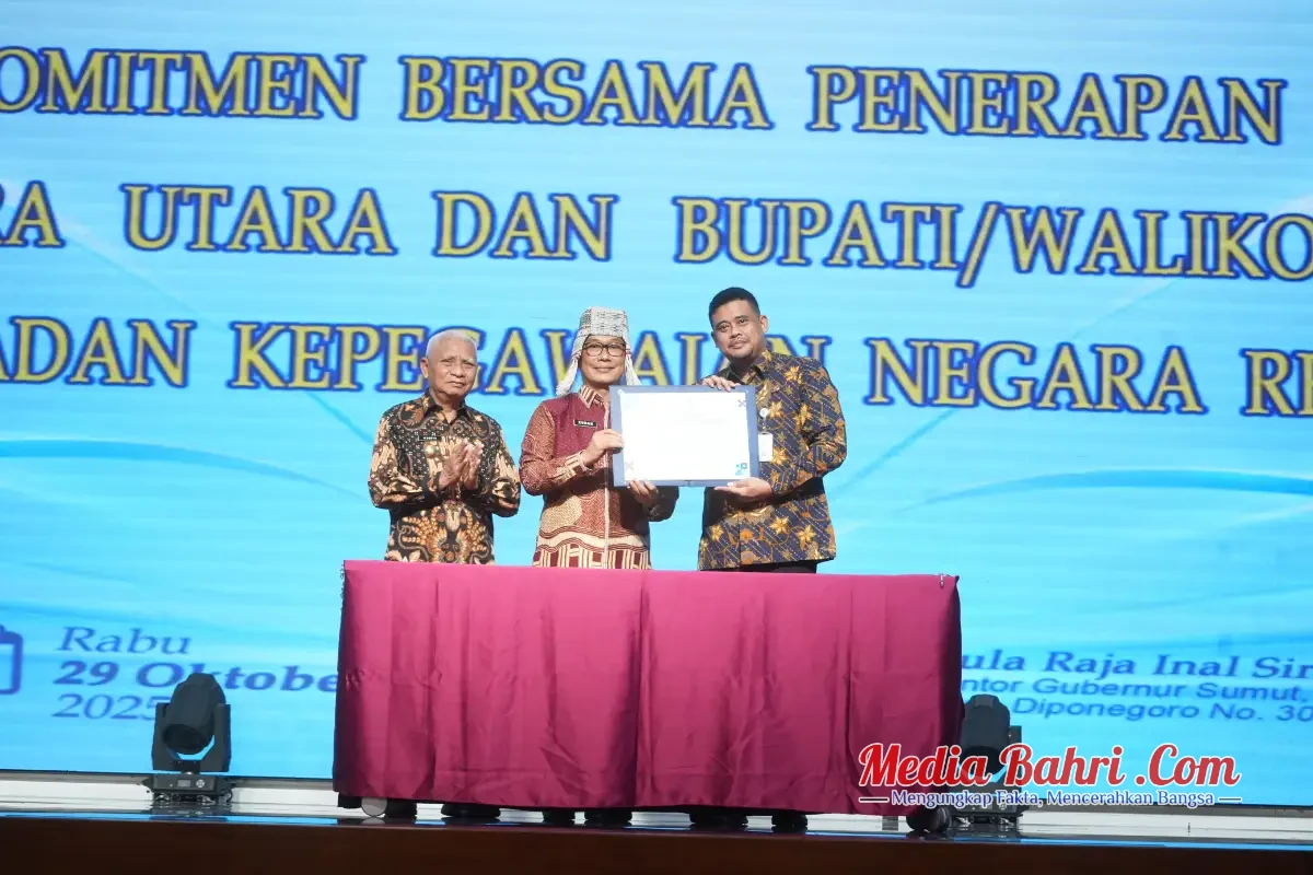 Acara turut dihadiri Wakil Gubernur Sumatera Utara H. Surya, B.Sc, Deputi Bidang Pembinaan Penyelenggaraan Manajemen ASN Dr. Herman, M.Si, Kepala BKD Sumut Sutan Tolang Lubis, S.STP, M.SP, serta para bupati/wali kota, kepala BKPSDM, dan pimpinan instansi vertikal se-Sumatera Utara.