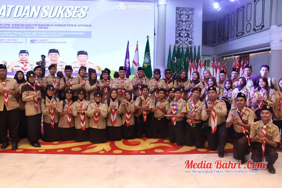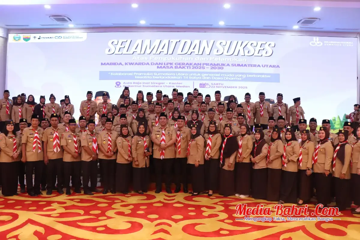 Mediabahri.com | Binjai — Pengukuhan dan Pelantikan Majelis Pembimbing Daerah (Mabida), Kwartir Daerah (Kwarda), serta Lembaga Pemeriksaan Keuangan (LPK) Gerakan Pramuka Sumatera Utara Masa Bakti 2025–2030 berlangsung tegas dan penuh penekanan arah pembenahan organisasi. Bertempat di Aula Raja Inal Siregar, acara ini menjadi momentum penting untuk menegaskan kembali arah Gerakan Pramuka Sumut yang selama ini dinilai belum tampil maksimal dalam kontribusi sosial maupun pembangunan daerah.