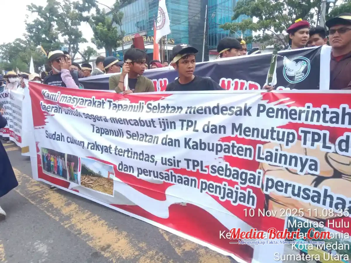 Mediabahri.com | Medan — Suasana di depan Kantor Gubernur Sumatera Utara, Jalan Pangeran Diponegoro, Medan, Senin (10/11/2025) pagi, memanas. Ratusan massa yang tergabung dalam Aliansi Masyarakat Batak Gerakan Tutup Toba Pulp Lestari (TPL) menggelar aksi besar-besaran menuntut pemerintah menutup perusahaan raksasa pulp tersebut.