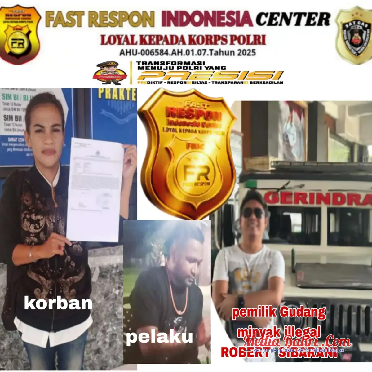 “Kami sudah memohon dan meminta agar aparat penegak hukum bertindak tegas, menutup gudang penimbunan minyak ilegal milik Robert Sibarani dan memprosesnya sesuai Undang-Undang Migas. Negara tidak boleh kalah oleh mafia minyak dan ancaman terhadap pers,” tutup Ketua Satgas Fast Respon Indonesia Center.
