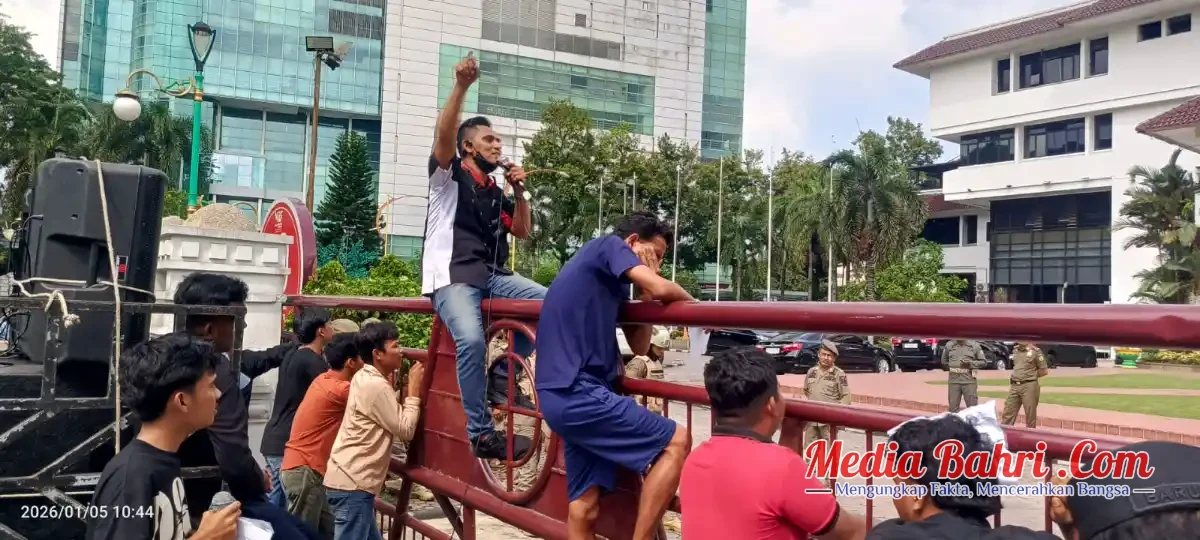 Medan – Mediabahri.com | Sejumlah massa yang tergabung dalam aliansi mahasiswa dan Lembaga Swadaya Masyarakat (LSM) Kebenaran Keadilan DPC Kota Medan menyampaikan aspirasi di depan Kantor Wali Kota Medan, Senin (5/1/2026) pagi.