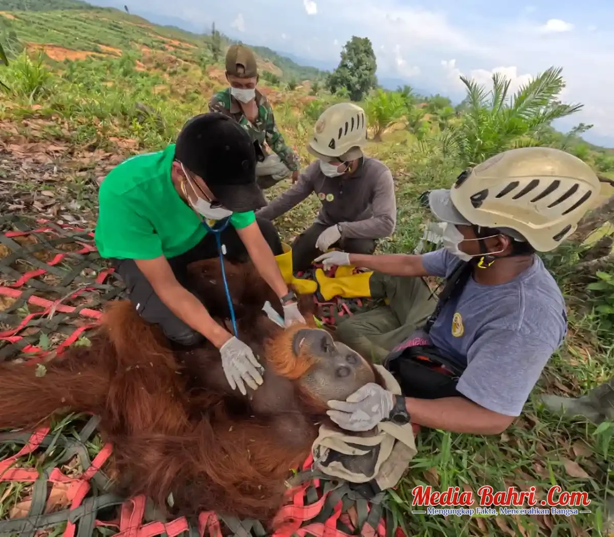Mediabahri.com | Langkat — Evakuasi seekor Orangutan Sumatera jantan di Desa Karya Jadi, Kecamatan Batang Serangan, Kabupaten Langkat, berlangsung dramatis. Satwa dilindungi tersebut berhasil diselamatkan oleh tim gabungan Balai Besar Konservasi Sumber Daya Alam Sumatera Utara, Balai Besar Taman Nasional Gunung Leuser, serta tim HOCRU YOSL–OIC, Selasa (21/4/2026).