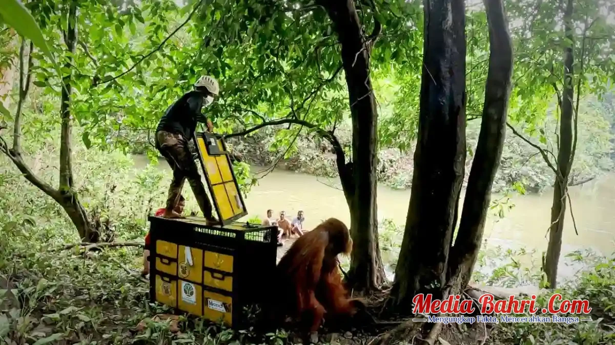 Setelah menempuh jarak sekitar 14 kilometer, tim akhirnya tiba di lokasi pelepasliaran. Saat pintu kandang dibuka, orangutan tersebut langsung memanjat pohon terdekat dan menghilang di rimbunnya hutan.